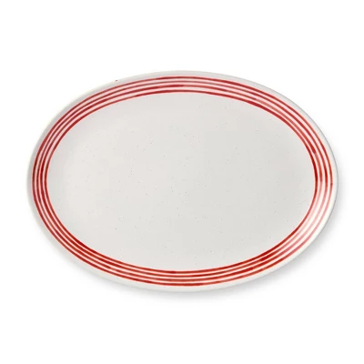 Add a touch of coastal elegance to your dining table with the Dockside Red Oval Stoneware Platter. Measuring 16 x 12 inches, this beautifully designed platter features bold red stripes on a crisp white background, creating a timeless look that complements any décor. Crafted from premium stoneware, it is built to last and is both microwave- and dishwasher-safe for your convenience. Perfect for serving an array of dishes, from appetizers to desserts, this platter is a versatile piece that makes entertaining effortless. Whether you’re hosting a casual get-together or a formal dinner, this Dockside Red Oval Platter delivers style, durability, and functionality in one. Its elegant design also makes it an excellent gift for housewarmings, weddings, or any special occasion.