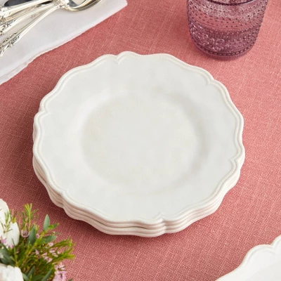 - The Isabella Cream Salad Plates, crafted from premium heavyweight melamine, redefine elegance and durability in tableware. Featuring a soft cream crackle finish with delicately scalloped edges, these plates effortlessly complement any dining setting, from casual meals to formal occasions. Their classic design is ideal for showcasing appetizers, side salads, or desserts, adding a touch of sophistication while maintaining practical usability.