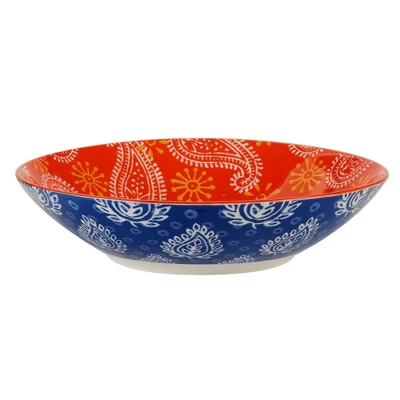 Step into a world where culinary delights meet vivid artistry with the Carnival Multi Set of 6 Soup/Pasta Bowls. These bowls, generous in size at 9.25 inches in diameter and 2.25 inches deep, holding 40 ounces, are a testament to both aesthetic beauty and utilitarian design. Crafted from durable porcelain, these bowls are not only microwave and dishwasher safe but also a joy to use and easy to care for. Their vibrant and assorted patterns provide a playful yet sophisticated mix-and-match opportunity with other items in this unique collection, ideal for creating a personalized tablescape. These bowls shine as a thoughtful gift for housewarming occasions or as a stunning home decor display, infusing any space with a celebratory spirit.
