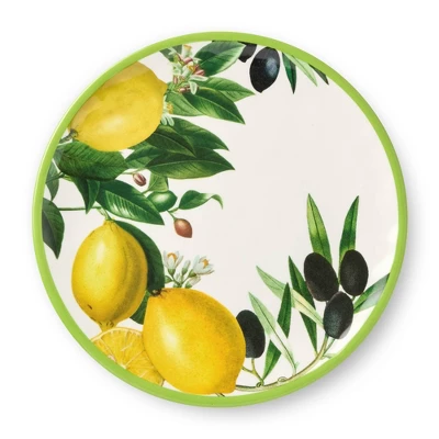 Add a burst of fresh style to your dining experience with the Limone Melamine Set of 6 Salad Plates. These 9-inch plates feature a striking lemon and olive branch design, highlighted with vibrant green and yellow hues, creating a cheerful and inviting Mediterranean-inspired look. Crafted from durable melamine, these plates are lightweight, shatterproof, and scratch-resistant, making them ideal for indoor meals and outdoor gatherings alike. Whether you’re serving crisp salads, small entrees, or delectable desserts, these versatile plates bring both beauty and practicality to your table. Designed for convenience, they are dishwasher-safe, ensuring effortless cleanup after every use. Perfect for casual family dinners, summer brunches, or elegant entertaining, these plates pair beautifully with other pieces in the Limone collection to complete your table setting with style and sophistication.