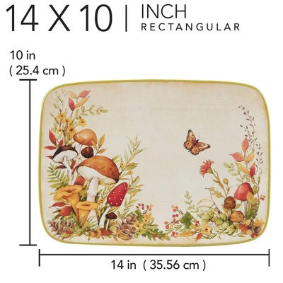 Set the scene for a magical dining experience with the Woodland Critters Rectangular Platter. Beautifully adorned with a delicate scene of mushrooms, a butterfly, and autumn foliage, this platter is an invitation to bring the whimsy and wonder of the forest to your table. Enhance your serving options with this enchanting Woodland Critters Rectangular Platter, a must-have for anyone who cherishes both functionality and style in their kitchen essentials.
